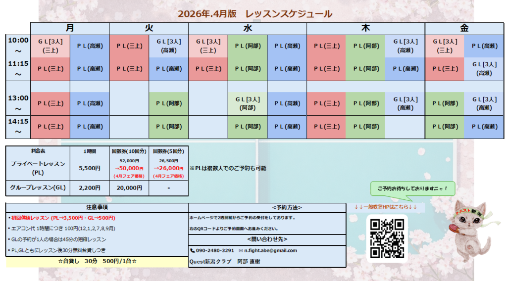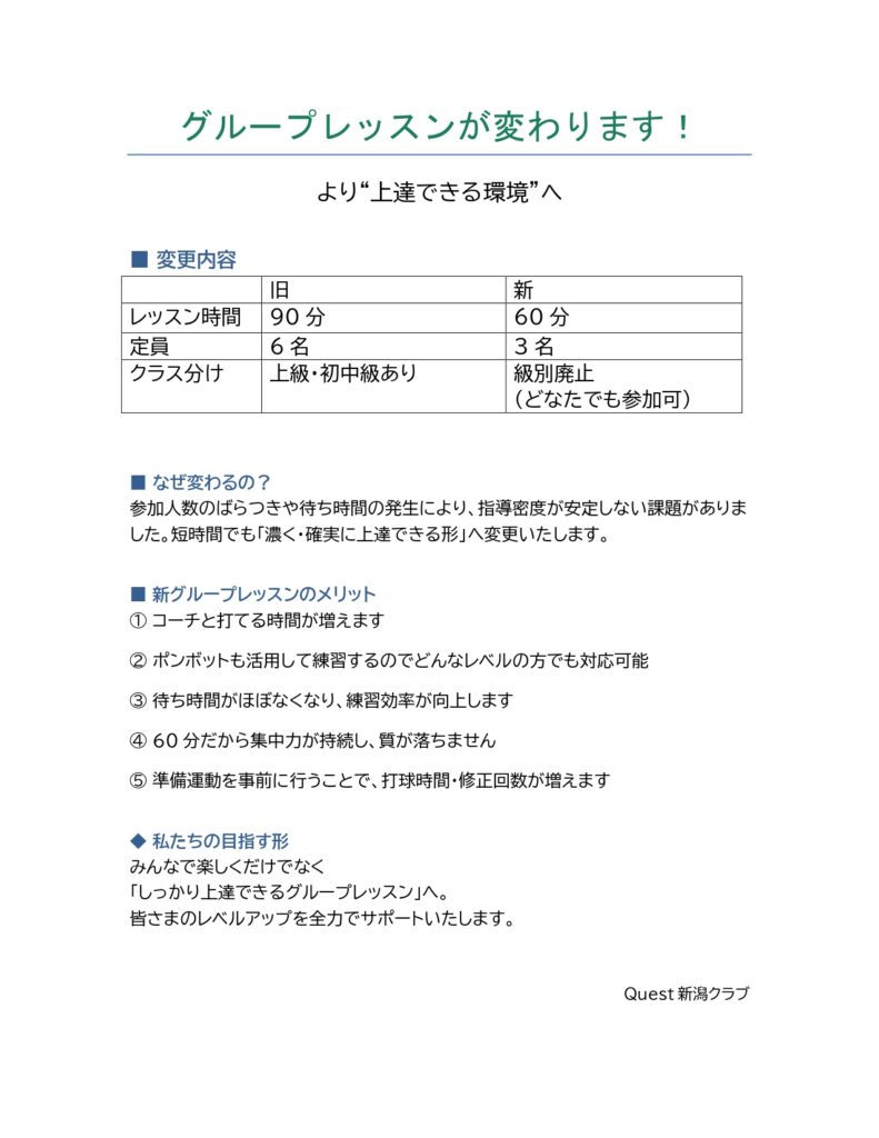 2026年4月より、レッスンスケジュール、グループレッスンの内容が新しくなります✨